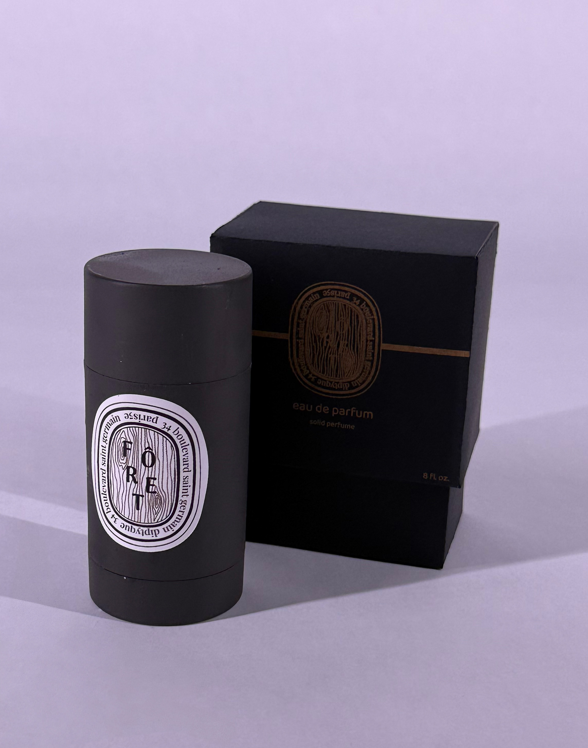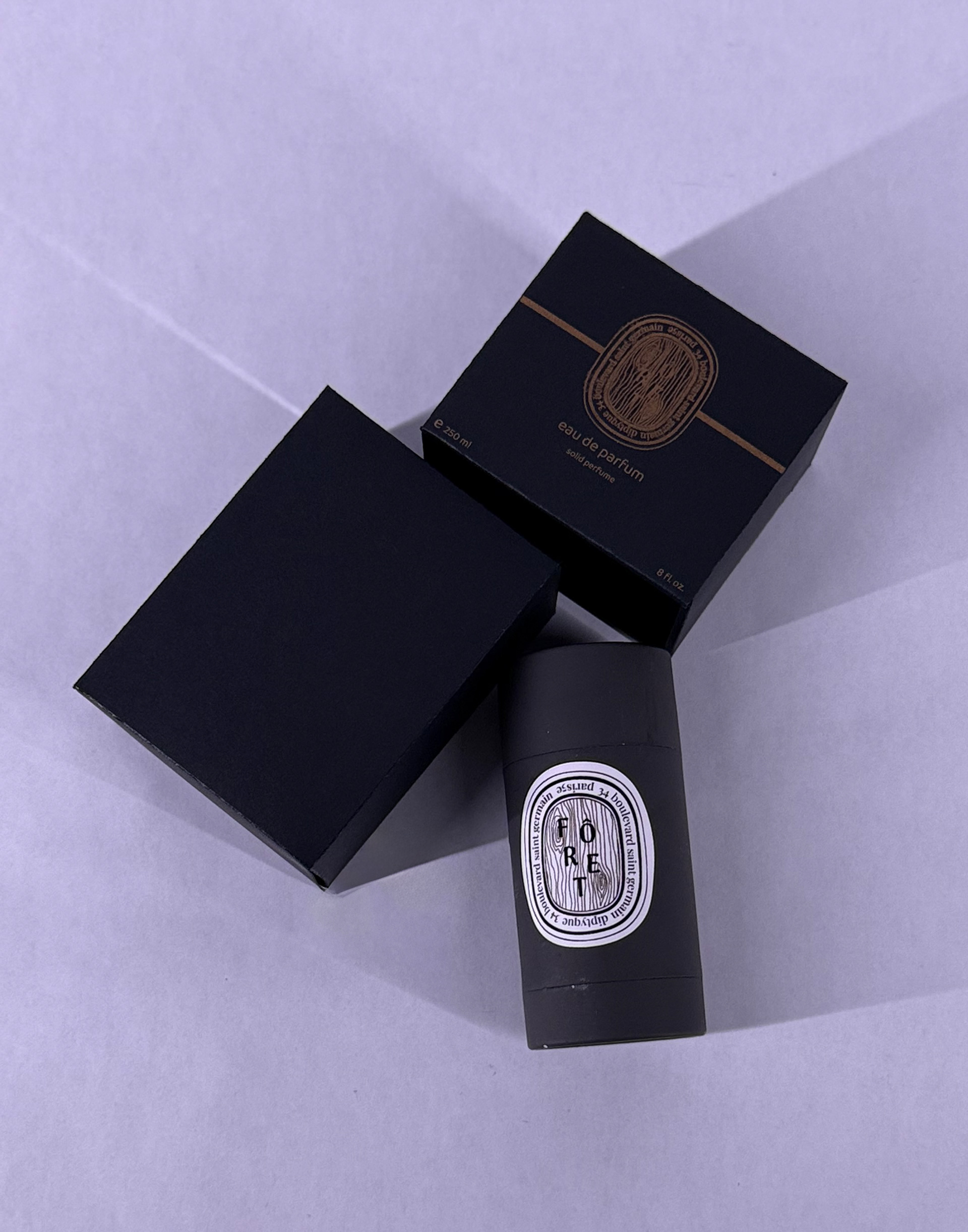 The Forêt solid perfume is designed for effortless, travel-friendly application. Encased in a sleek, compact form, it allows for precise, mess-free use while maintaining the rich, grounding scents of mahogany and teakwood. The charcoal-toned packaging reflects the deep, earthy essence of the fragrance, embodying sophistication and minimalism while reinforcing the brand’s natural inspiration.