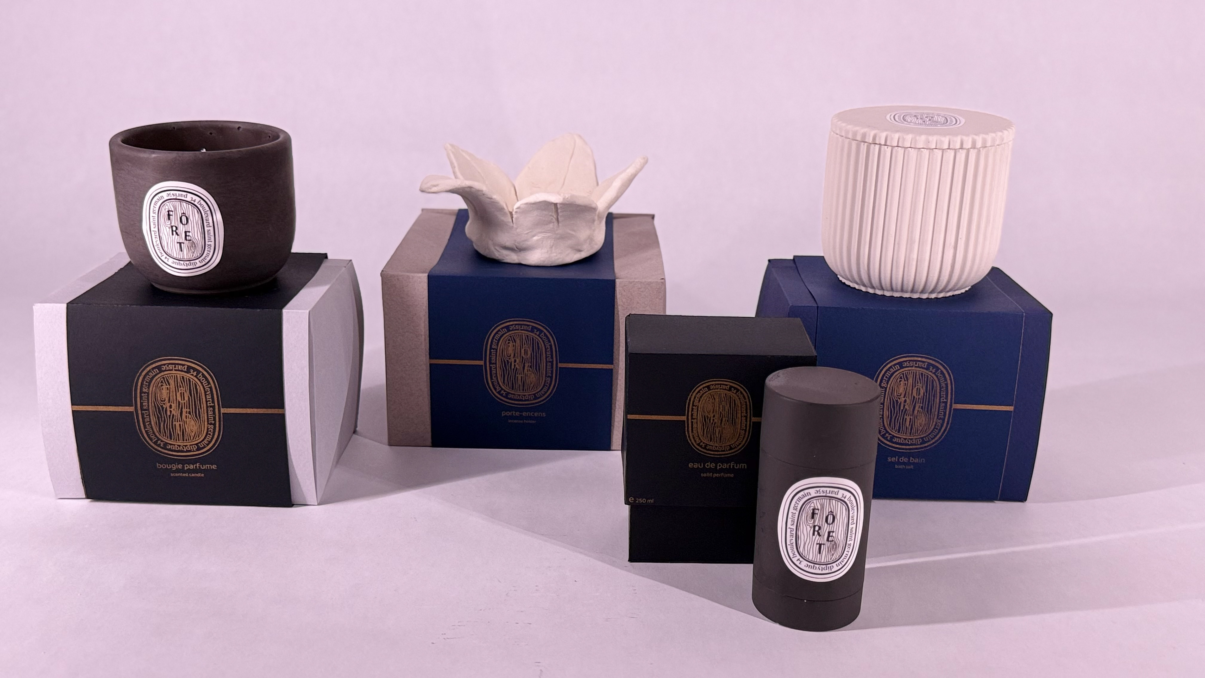 Forêt by Diptyque is a luxurious collection inspired by the deep, woody essence of mahogany and teakwood. Featuring a solid perfume, incense holder, candle, and bath salts, each piece immerses you in the warmth of the forest. Encased in elegant packaging, Forêt blends nature’s richness with Diptyque’s timeless craftsmanship.