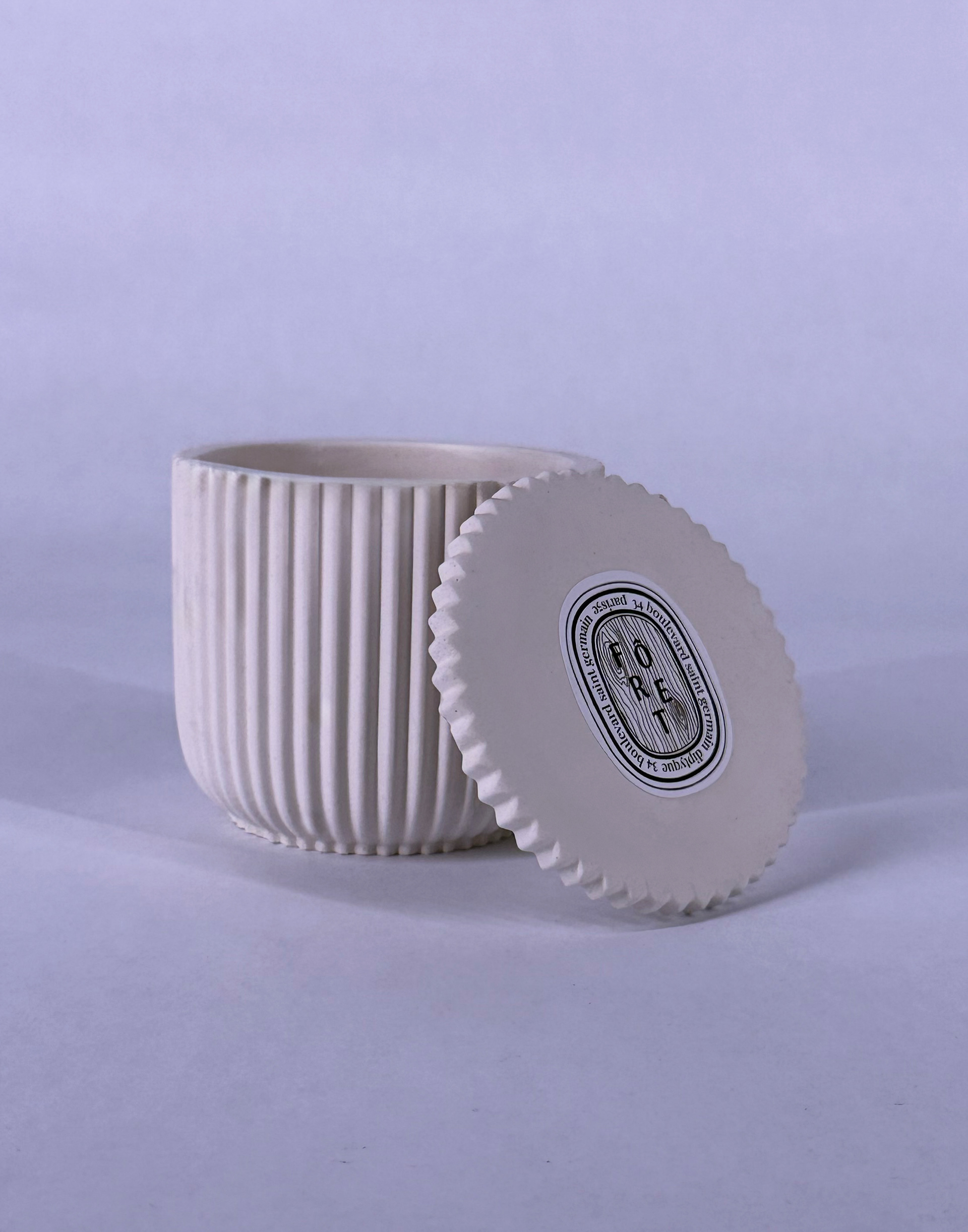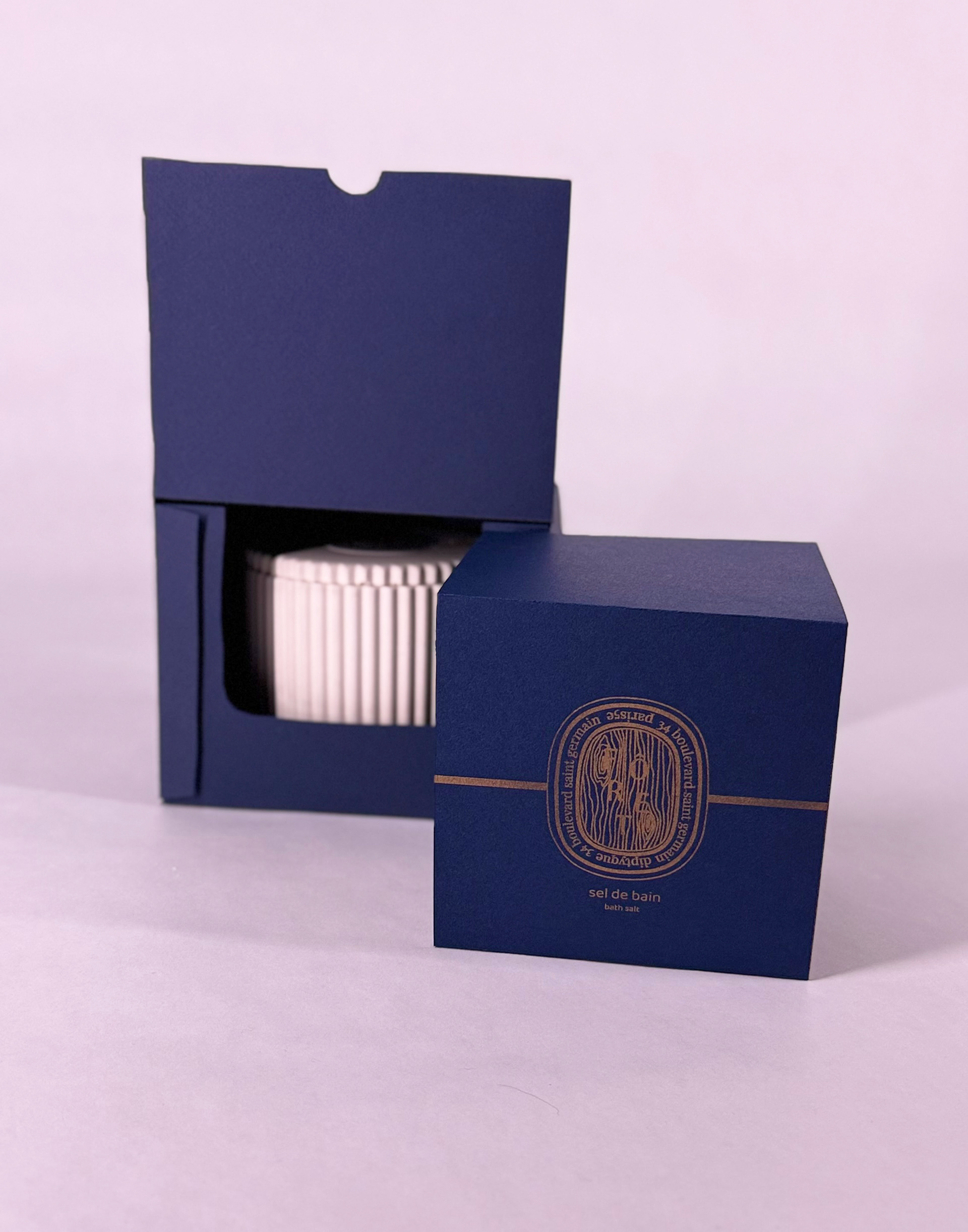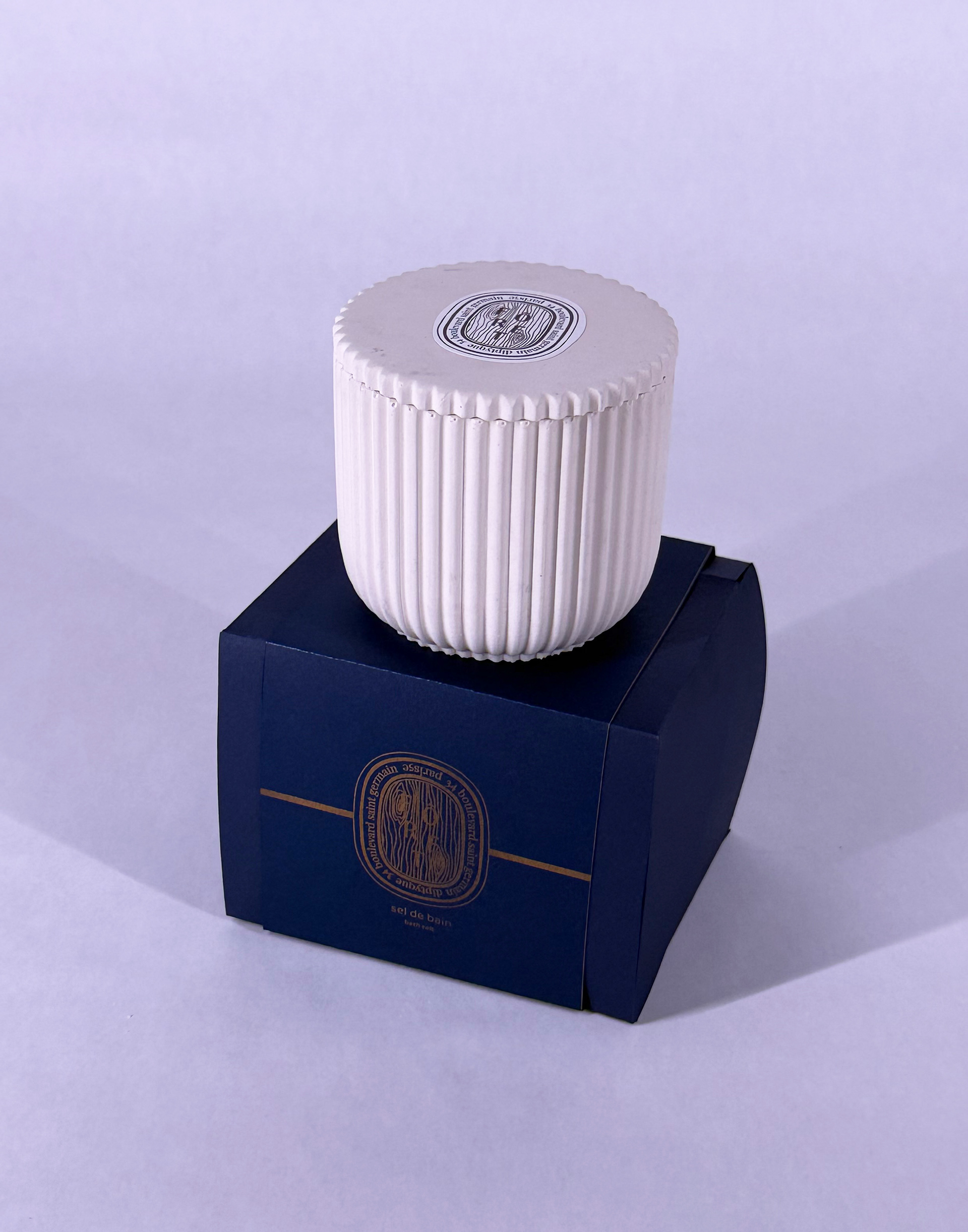 The Forêt Bath Salts bring a luxurious spa-like experience, infused with the rich, grounding scents of mahogany and teakwood. Housed in an elegant porcelain container, its fluted design enhances the tactile experience, while the lid ensures freshness and aesthetic harmony.