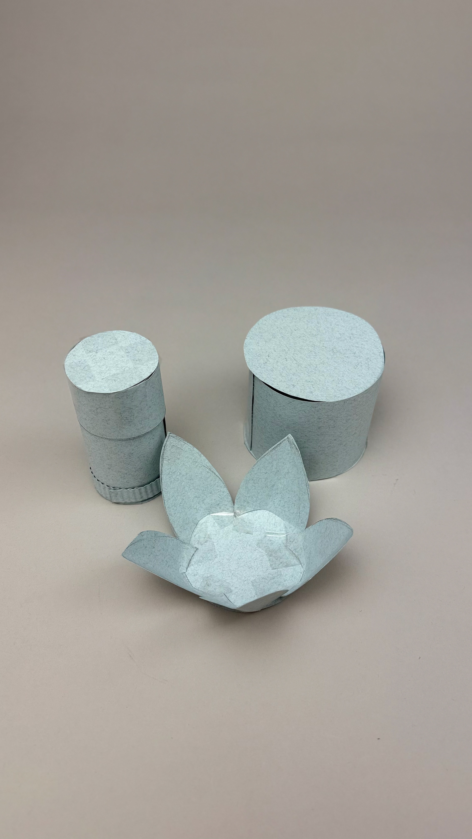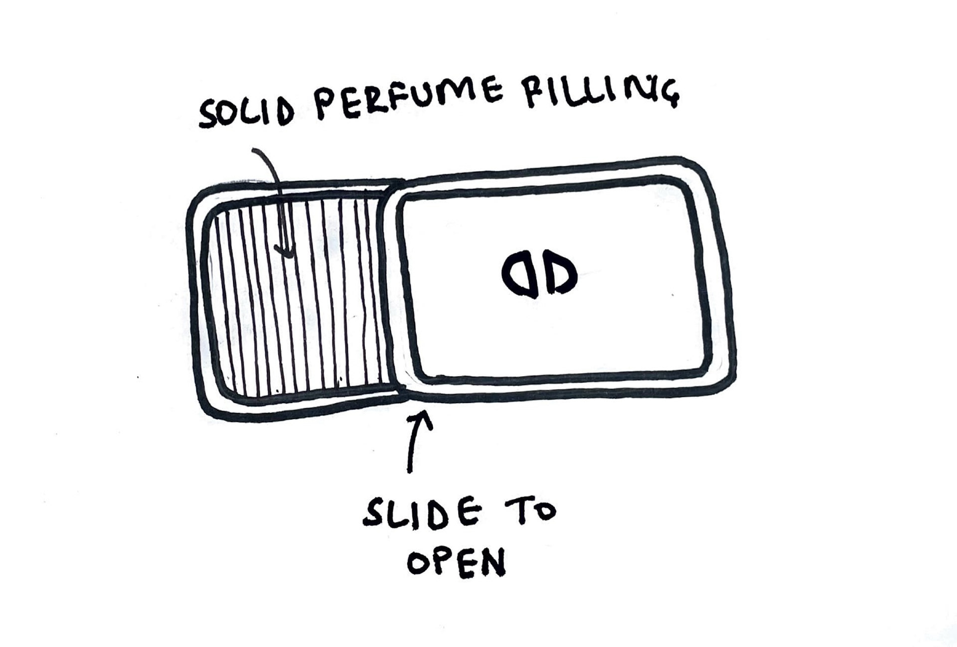 The design process explored various functional and aesthetic possibilities through concept sketches, balancing organic forms with practical usability. The cylindrical and slide-to-open designs enhance portability, while textured elements add a tactile connection to the fragrance experience. The Forêt solid perfume merges convenience with artistry, making scent application a seamless, refined ritual.